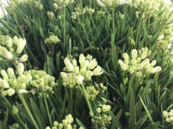 Agapanthus africanus ‘Double Diamond’ is commonly known as “Double Diamond African Lily”. It is a dwarf variety clumping plant with dark green strap-like leaves. The double flowers are white featuring a frilled edge. Borne on sturdy stems, the flowers appear in profusion from late Summer into Autumn. Agapanthus are tough plants well-suited to Australian conditions, needing little water once established.