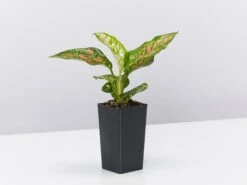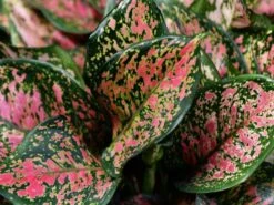 Aglaonema commutatum Red Valentine is a slow-growing Aglaonema cultivar, with variegated foliage he is simply irresistible. The Red Valentine bears appealing leaves with tones of rose-pink randomly splashed with dark green blotches. The midrib, margin and petiole are all dark green. Best foliage colour appears in indirect light and prefers soil to dry out between watering.