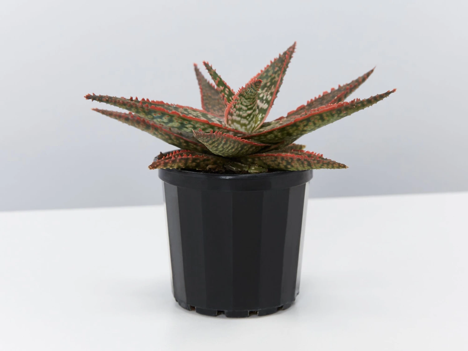 Aloe Christmas Cracker is a succulent with deep green leaves and stripes of dark vibrant red raised markings. This succulent is very hardy and drought tolerant and looks great in mass planting or as a feature plant in a pot. It’s one of our favourites.