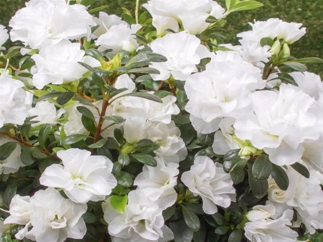 Azalea indica ‘White Bouquet’ is a compact evergreen shrub with small dark glossy leaves and beautiful white flowers. It is ideal for pots on semi-shaded patios, in garden beds and as a flowering carpet underneath trees. Choose a sheltered location with well-drained, humus-rich soil. The White Bouquet prefers dappled sun or afternoon shade.