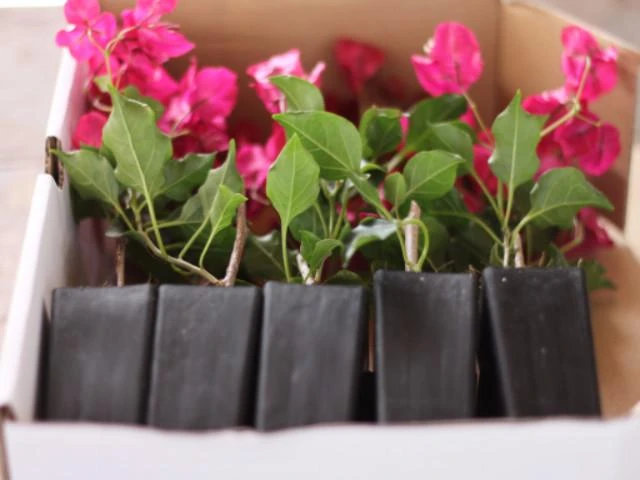 Please note: At this small size, Bougainvillea have delicate roots and should be handled with care. Don’t tease or disturb roots but rather water the pot well, gently invert and tap pot on the side of a hard surface so it slides out. Our recommendation is to plant our beautifully-grown Bougainvillea into a larger pot rather than directly into the ground.