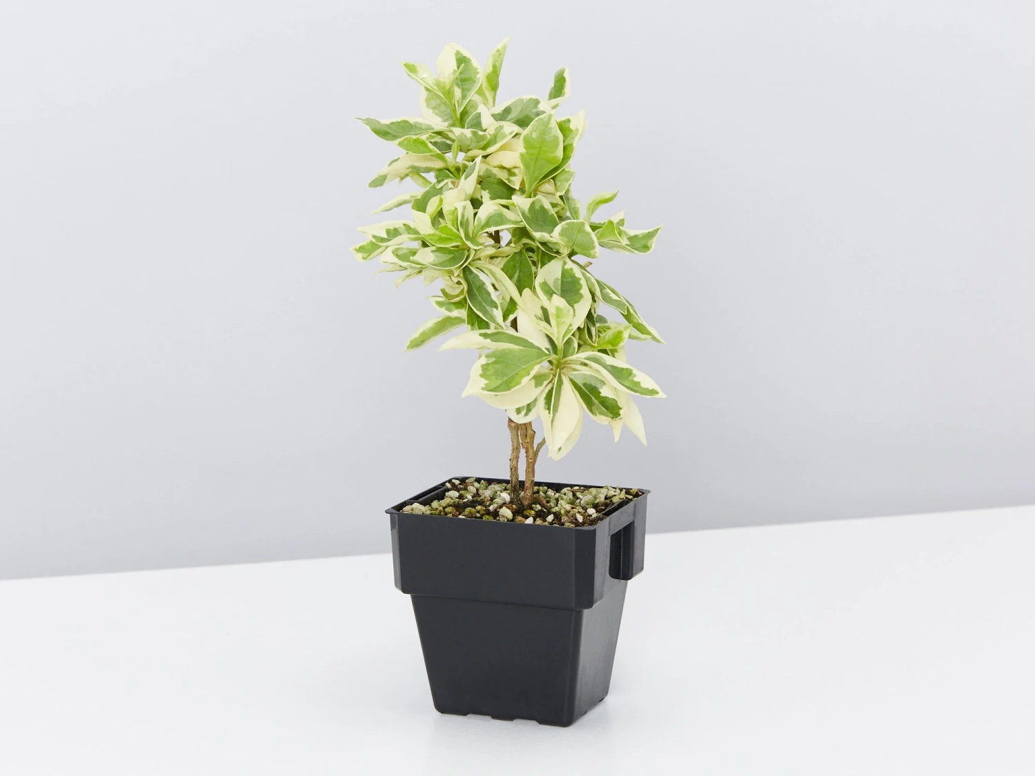 Brunfelsia latifolia compacta variegata is commonly known as “Dwarf Variegated Yesterday Today and Tomorrow”. It’s attractive green and white foliage provides colour all-year-round. The scented tubular flowers are a bonus. The flowers change colour over successive days, opening as purple, fading to lilac and then finally to white. It is an excellent choice for a low maintenance smaller shrub with a compact habit.