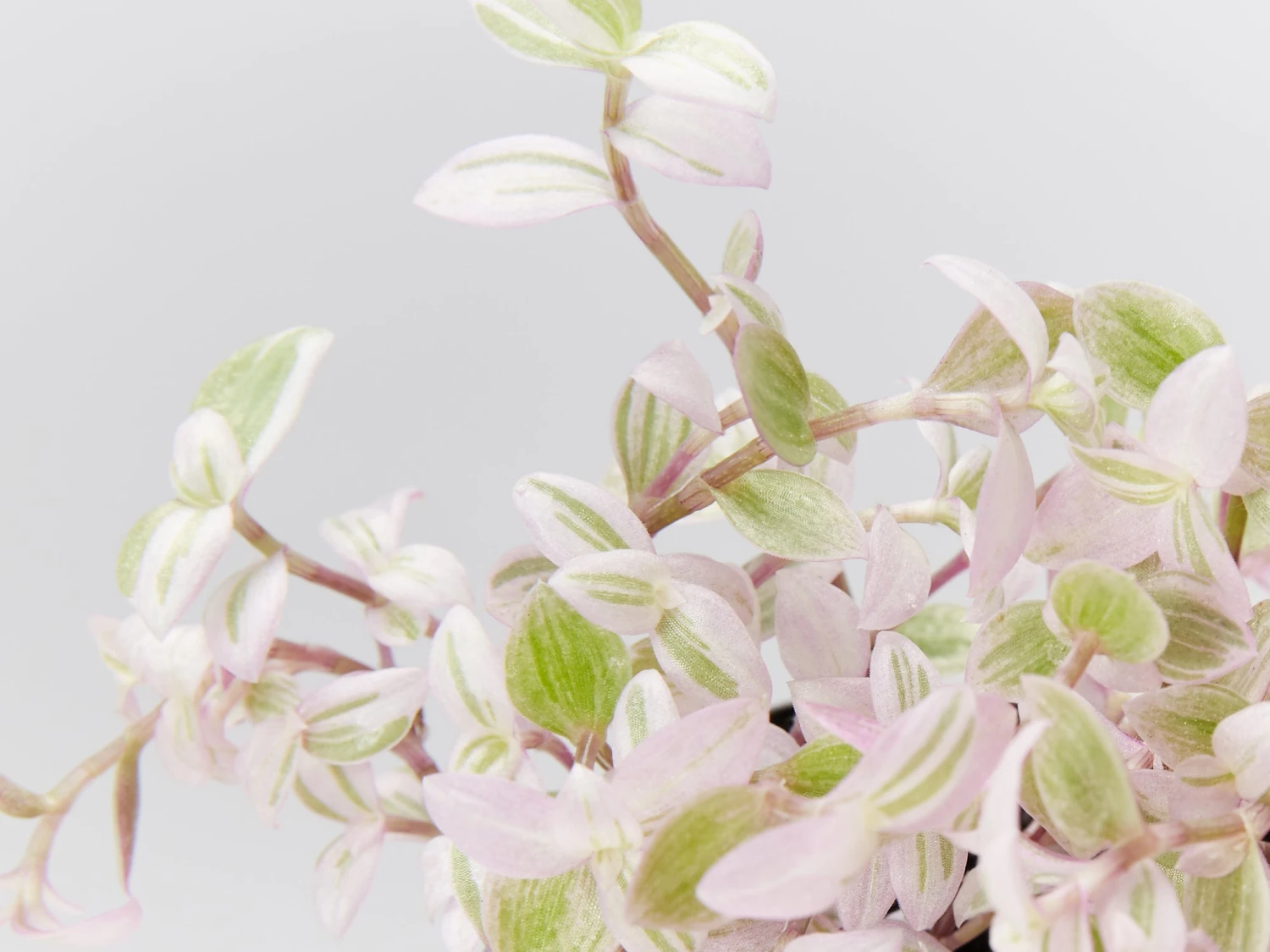 Callisia repens Pink Pantherย a mellow trailing indoor plant withย little dainty waxy pink, green and white variegated leaves dottedย along cascading stems.ย She is compact and trailing making her the cutest little addition to your home.