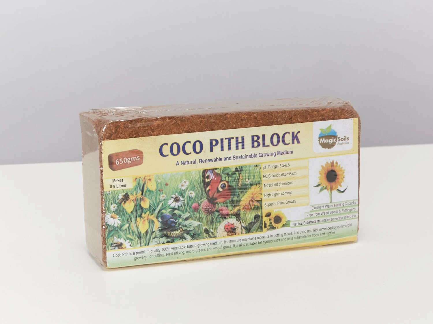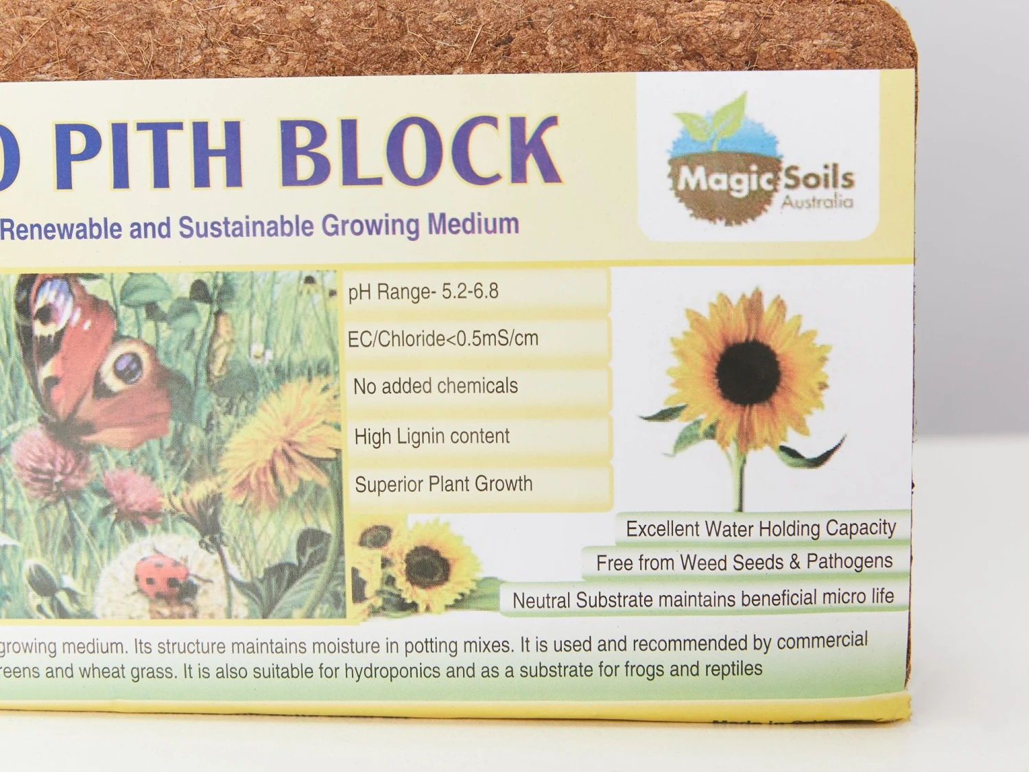 Coconuts, which grow all year abundantly, are used to make Coco Pith Block. Coir pith blocks hold moisture longer and disintegrate more slowly than other popular gardening products. Reduce water use with this renewable and sustainable growing medium and your plants will grow crazy as a coconut (ok that was a bad joke).