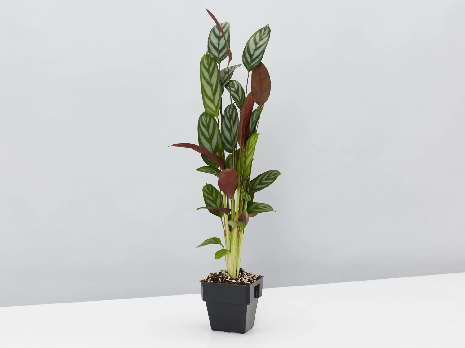 The Ctenanthe Setosa will stand up tall and make you proud with his silvery-white leaves that are striped with dark green and dark purple on the underside. His understated foliage tones and pretty patterns will go with any decor.