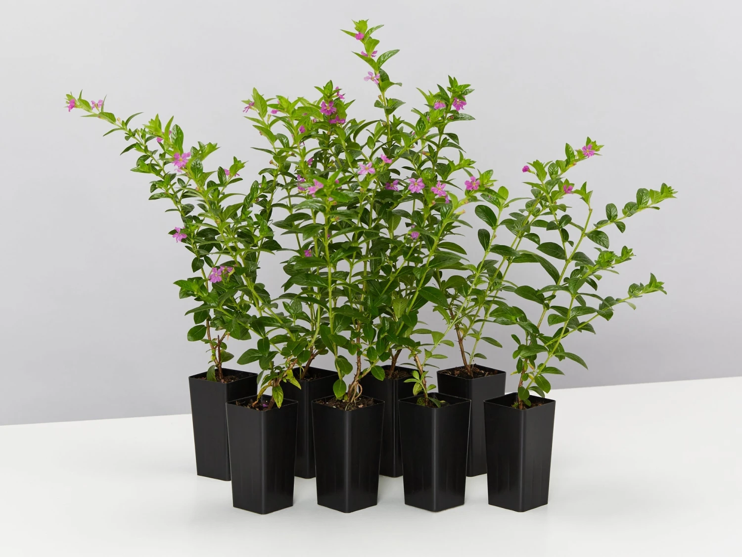 Cuphea hyssopifolia – Mauve, also known as “False Heather” is a small, evergreen, fast growing shrub with bright green glossy leaves and produces dainty mauve flowers year-round. Tolerating full sun to semi-shade, it is a very hardy plant, ideal as a low hedge, for garden borders, in rockeries or in pots. They respond well to light trimming.