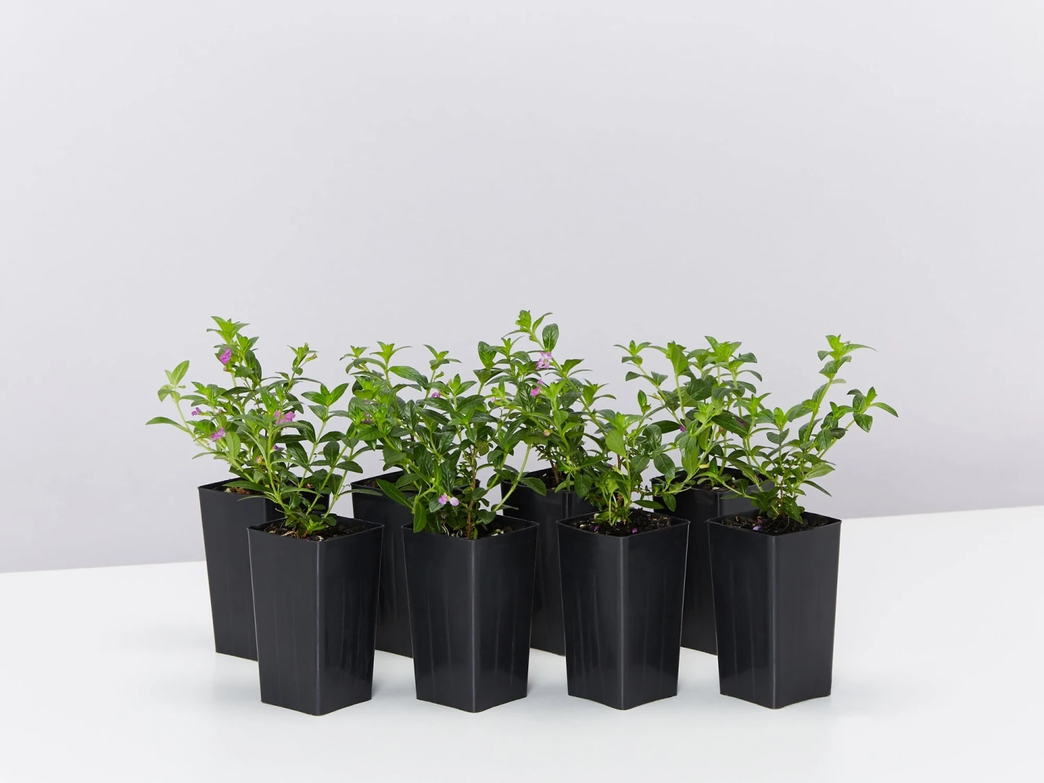 Cuphea hyssopifolia – Purple, also known as “False Heather” is a small, evergreen, fast growing shrub with bright green glossy leaves and produces dainty purple flowers year-round. Tolerating full sun to semi-shade, it is a very hardy plant, ideal as a low hedge, for garden borders, in rockeries or in pots. They respond well to light trimming.