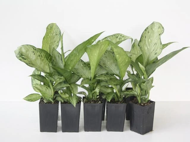 Dieffenbachia Memoria corsii is an attractive medium sized plant with grey-green leaves which are mottled with white spots. Great for pots indoor and or for shady positions in the garden. Makes for the perfect easy to care for feature plant around the home.