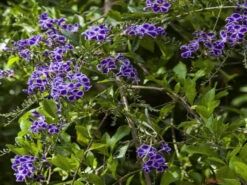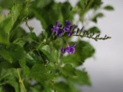 They appear in sprays of mid-purple with each little flower showing off delicate white edging. The blooms have the most amazing vanilla fragrance that pollinators go crazy for.