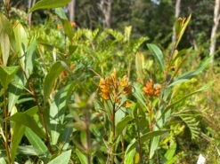Grevillea ‘Orange Marmalade’ is a hybrid whose parents are said to be Grevillea glossadenia and Grevillea venusta and appeared in a Brisbane garden. Large flowers are carried in terminal racemes and are an unusual orange colour with red styles and resemble the colour of orange marmalade hence the name.