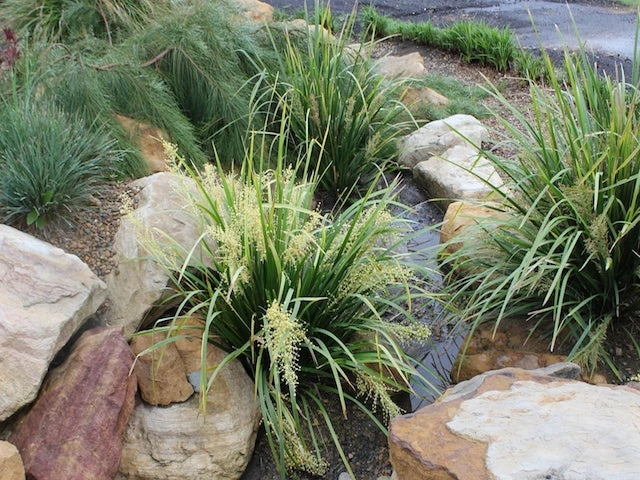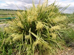 Lomandra hystrix Katie Belles™ ‘LHBYF’ is one of the best performing native grasses for wet areas such as creek banks, rain gardens or drainage channels. She not only looks good with her masses of big, yellow flowers and dark green strappy leaves she is tough withstanding drought, frosts and coastal conditions.