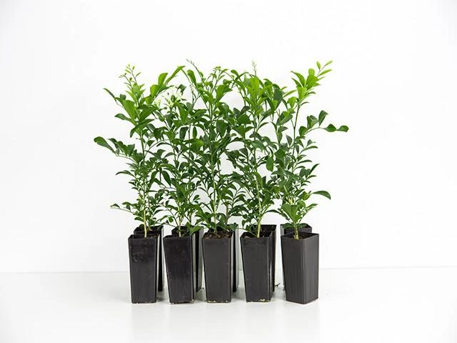 Murraya Hip-High is a dwarf form of the extremely popular Mock Orange (Murraya paniculata). This dense, evergreen, rounded shrub with rich green foliage can be used as a container plant, for a minimum maintenance hedge, as a small foreground shrub or in general landscaping where very hardy plants are required. Murraya Hip-High is an excellent substitute for the slower growing Buxus.