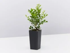 A dwarf form of Murraya paniculata and is most popular for use as a low hedge. He is commonly known as “Dwarf Orange Jessamine”. A hardy, evergreen shrub with small, glossy, bright green, densely arranged leaves and bearing delicate creamy-white, scented flowers in the warmer months.