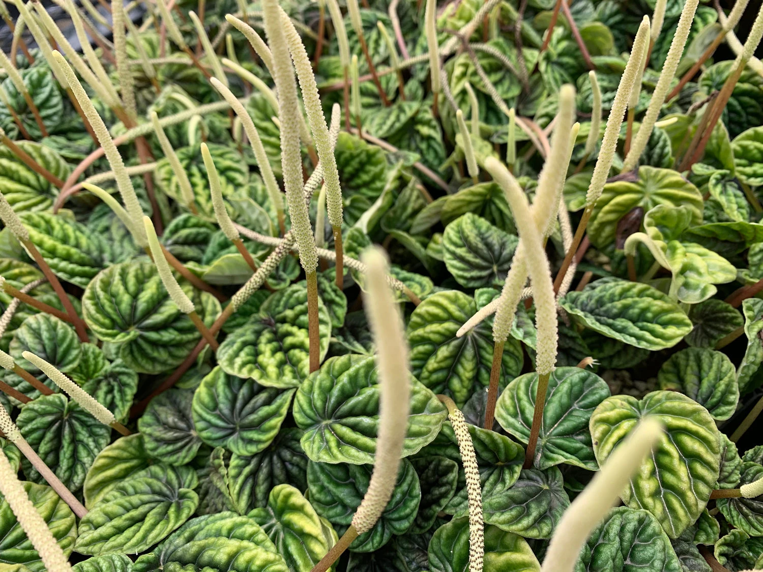 Peperomia caperata Emerald Ripple is a semi succulent, meaning it is not technically a succulent but requires similar care. The Emerald Ripple is a compact little guy with beautiful heart shaped dark green rippled leaves that sit nicely on thin red stalks. It’s an easy to love houseplant that will shower you with flowers in summer, the white flowers pop up and sit pretty on top of the foliage like little signs.