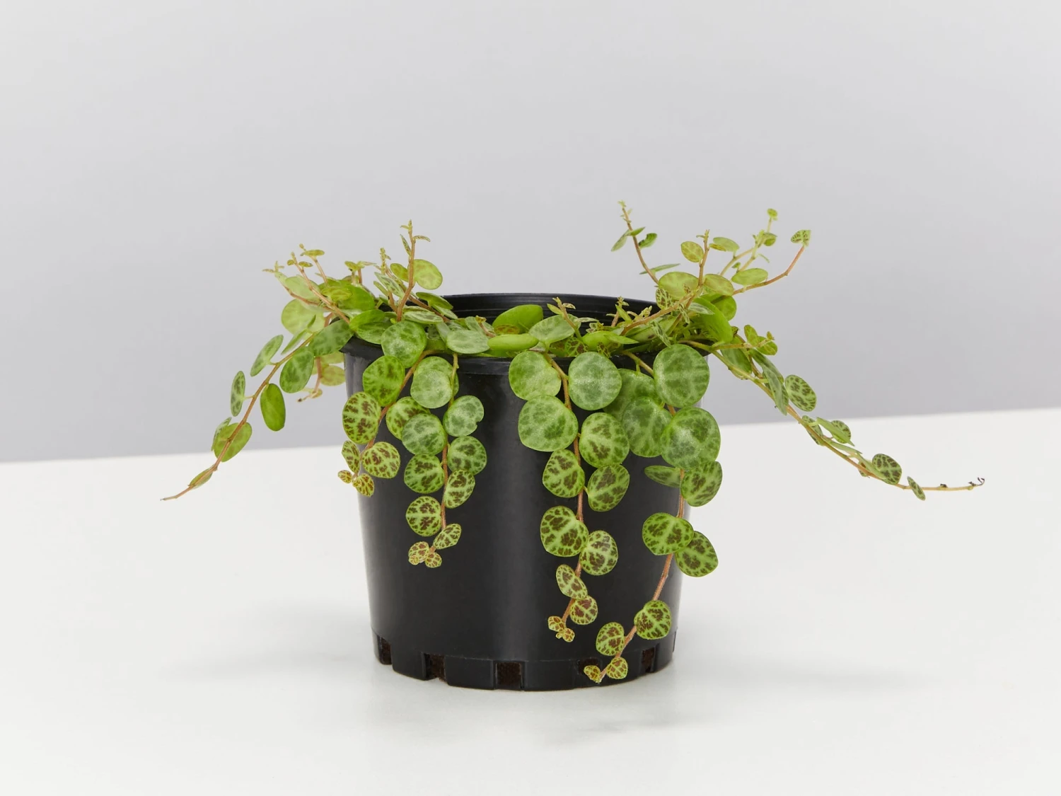 Peperomia prostrata also known as String of Turtles, Jade Necklace, Magic Marmer and Radiator Plant. You will fall in love with his little button-like foliage and interlace pattern. He is a great little indoor plant for beginners, mostly because he prefers a bit of neglect and is somewhat forgiving. But when moving this little dude, take care he can be a delicate button so it’s a good idea to keep him this nursery grow pot as long as you can.