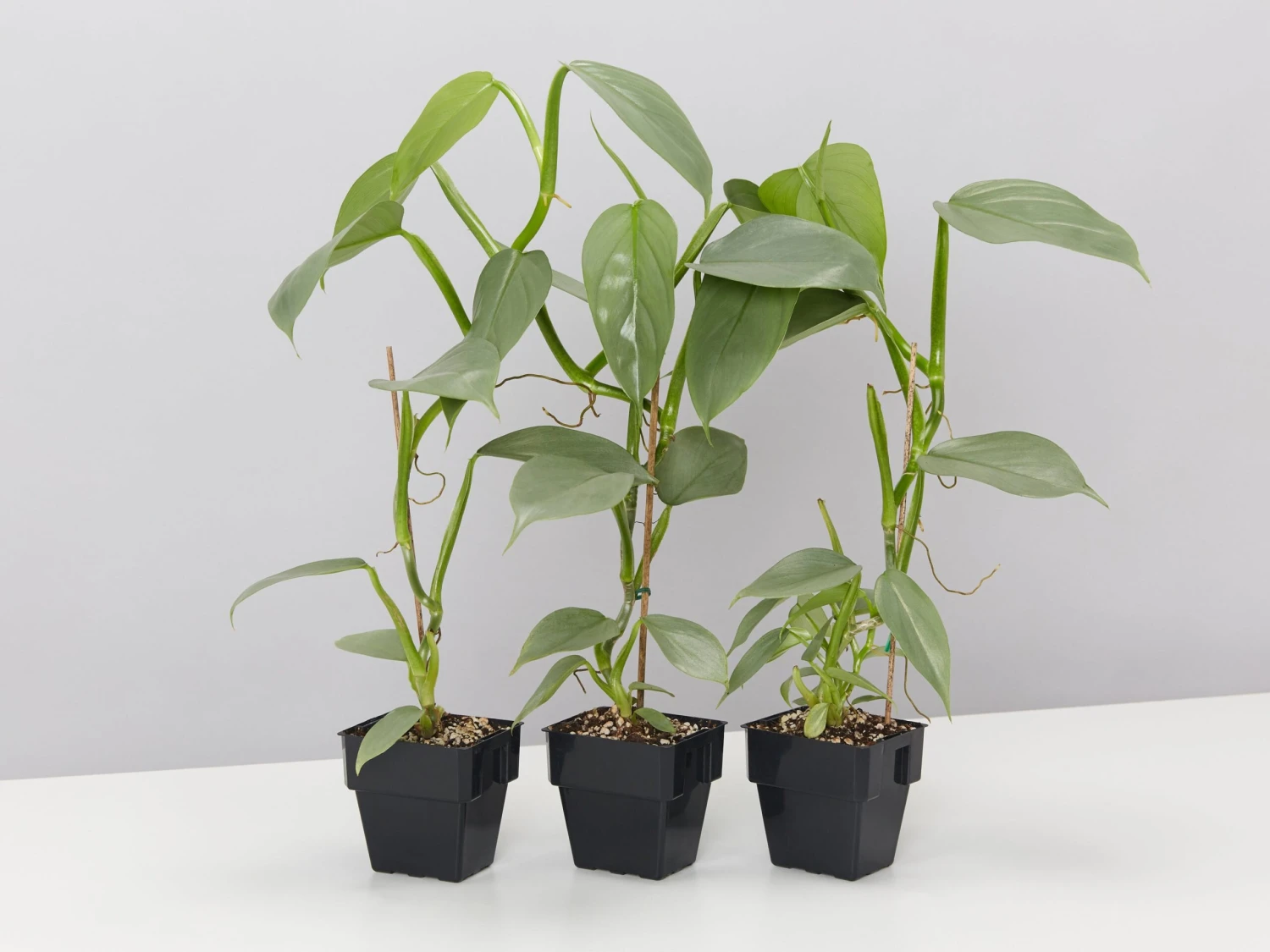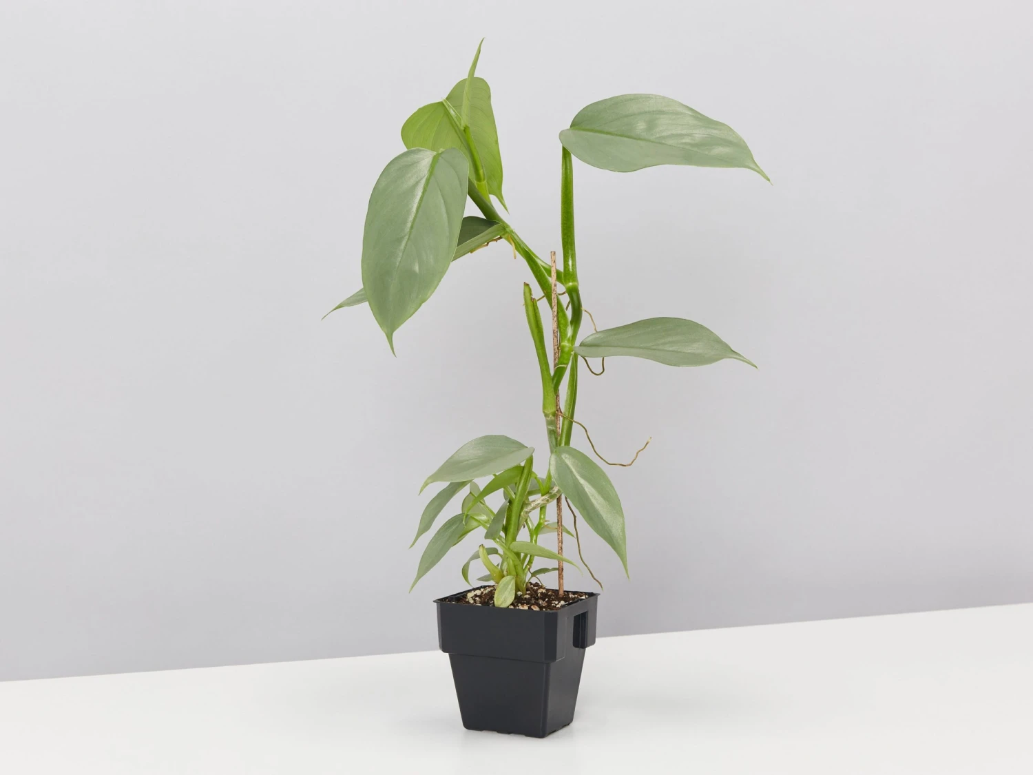 Philodendron hastatum “Silver Sword” aka Silver Sword Philodendron – thanks to his silver, almost metallic sword-shaped leaves. This knight and shining-foliage plant will remove toxins from your room air as he stands guard. Best-grown in medium light, though lower light levels are acceptable.