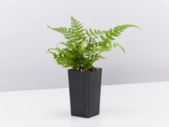 Polystichum tsussimense is more commonly known as the Korean Rock Fern. It is an easy to grow fern with its dark green fronds creating lace like patterns. Perfect for a dark spot in the bathroom or a glass terrarium, this baby will be sure to bring a touch of exotic to wherever she ends up calling home.