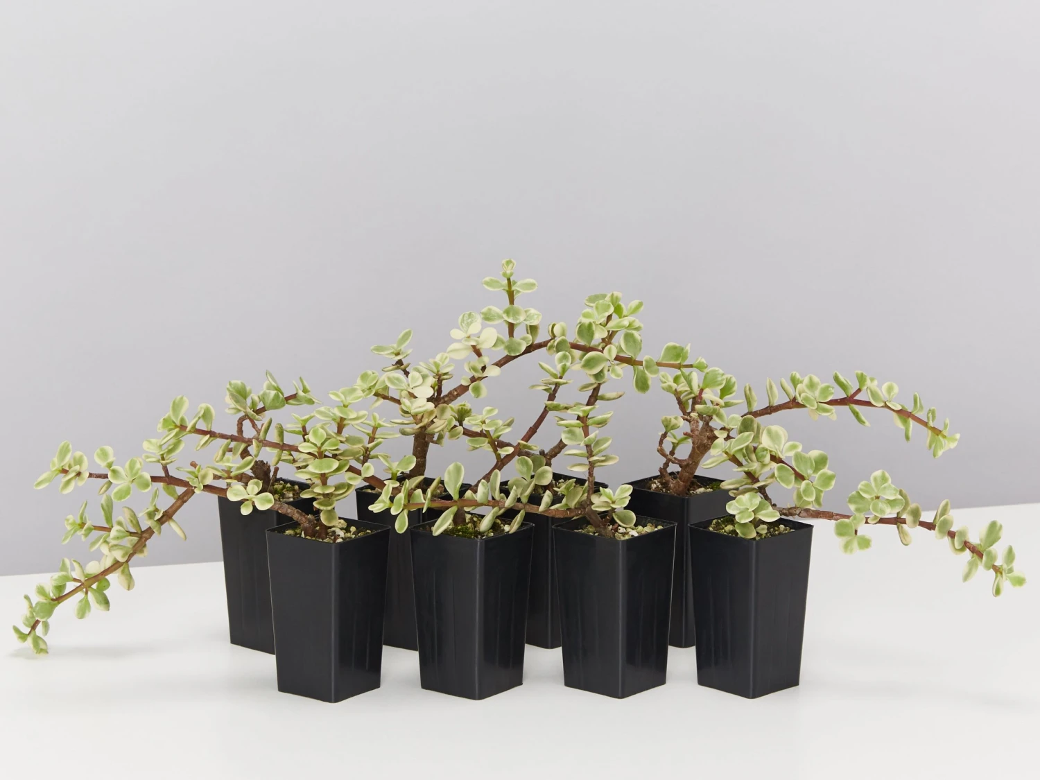The Portulacaria Afra f. Variegata is better known as Rainbow Bush, or variegated Elephant bush/shrub/food because elephants just love to chomp on it.