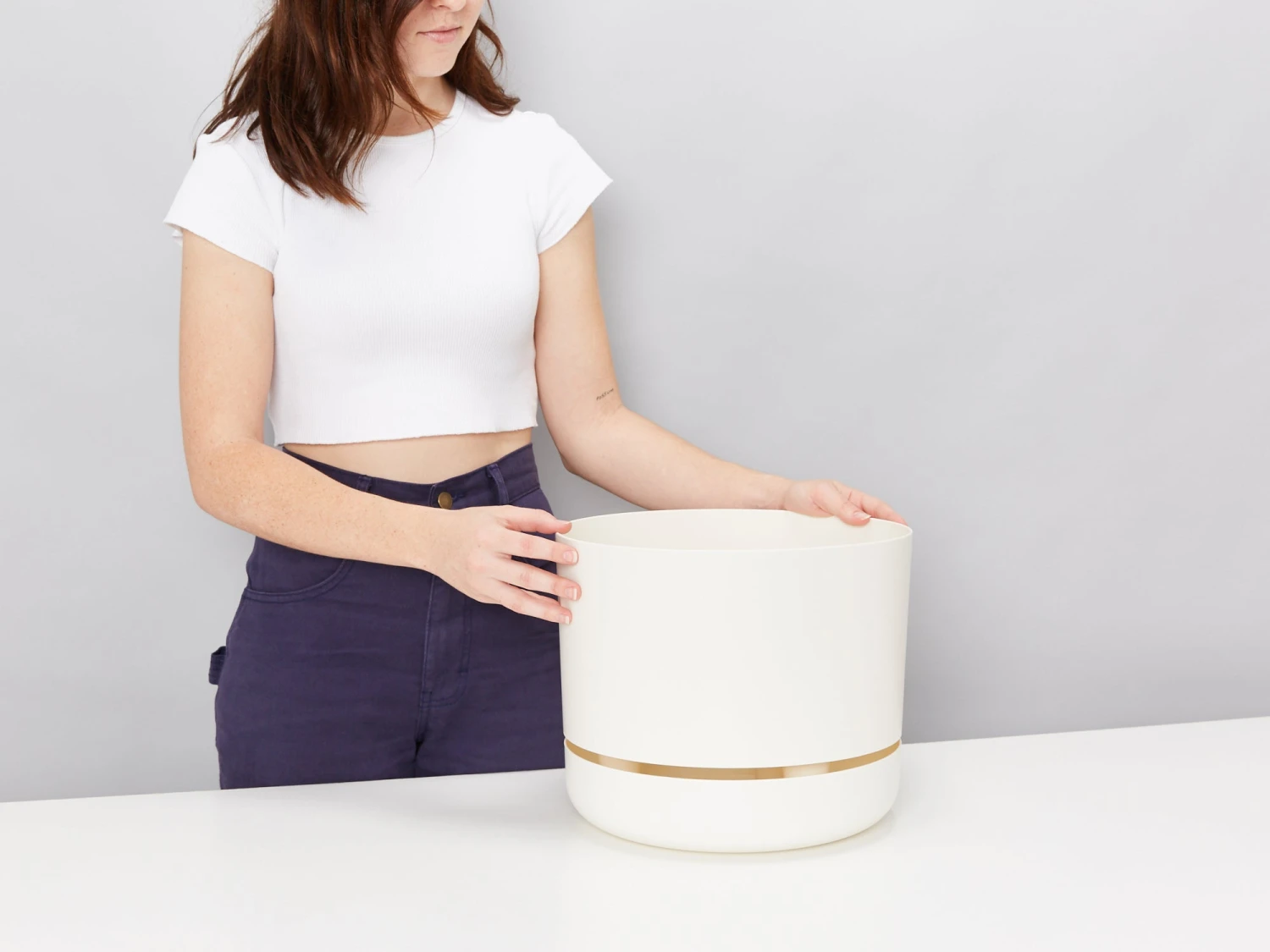 Clean, modern, and in perfect shades of Linen, Fog and Black.. now in larger pot sizes! This size is perfect for moving your medium-sized plants up to a bigger home. Give them space to stretch their legs and grow bigger and better.