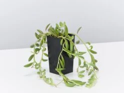 Senecio radicans is also known as String of Beans or String of Bananas. It is closely related to the popular String of Pearls and is a rare succulent with unique cascading banana / bean shaped leaves. If you are lucky this plant will reward you with small yellow / white cinnamon scented flowers.