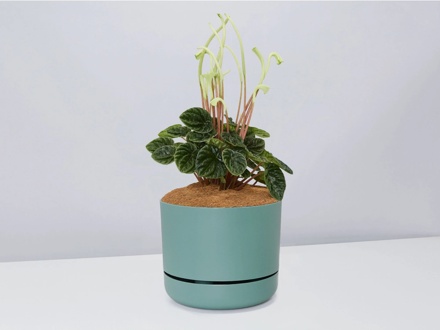 Peperomia caperata Lilian also goes by the name White Sticks Plant or the Radiator Plant. She has heart-shaped dark green foliage that grows in a compact mounded form and makes a great desktop plant for your home office.